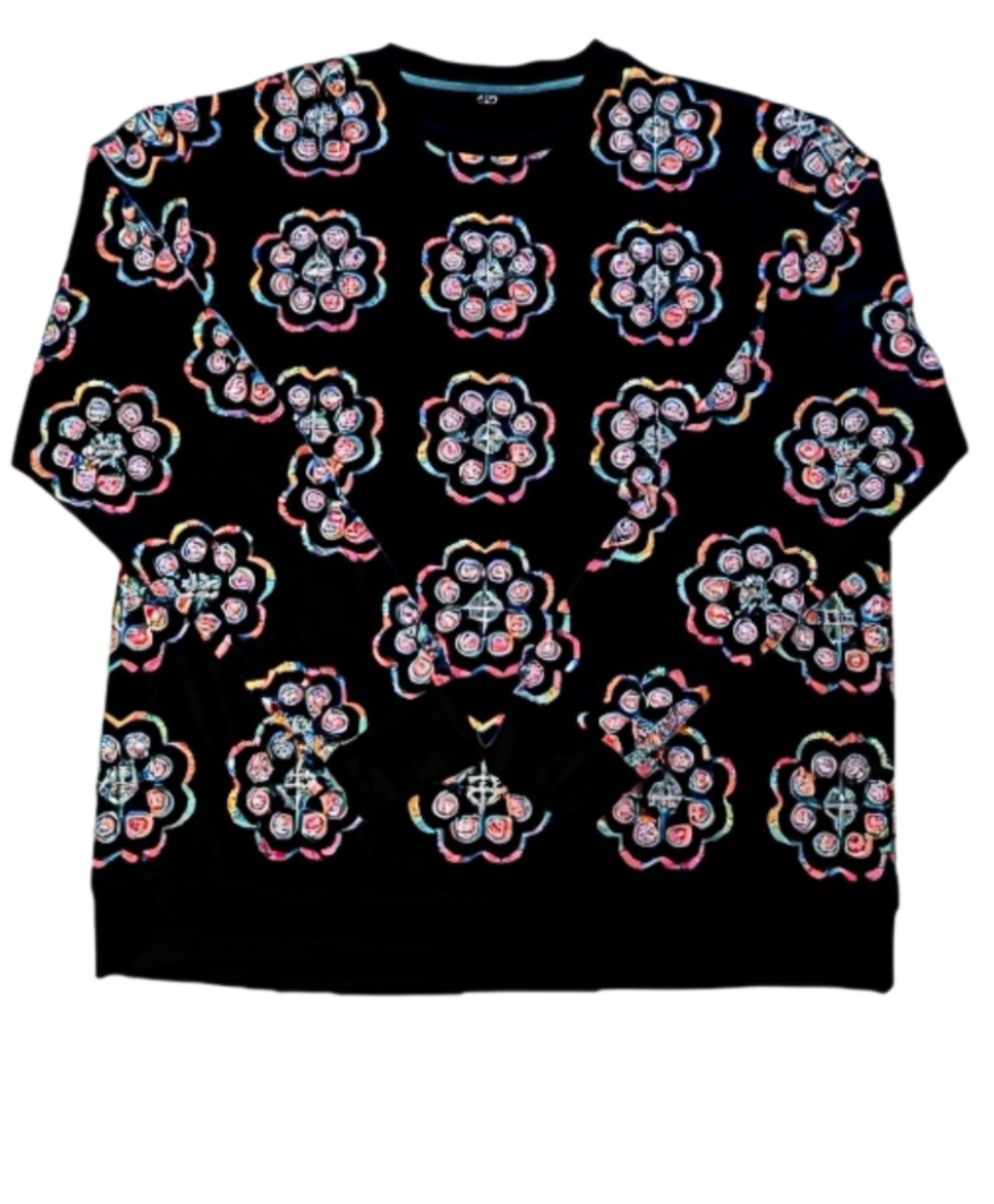 BLACK - Hmong Floral Unisex Crew Neck Sweater (AOP)